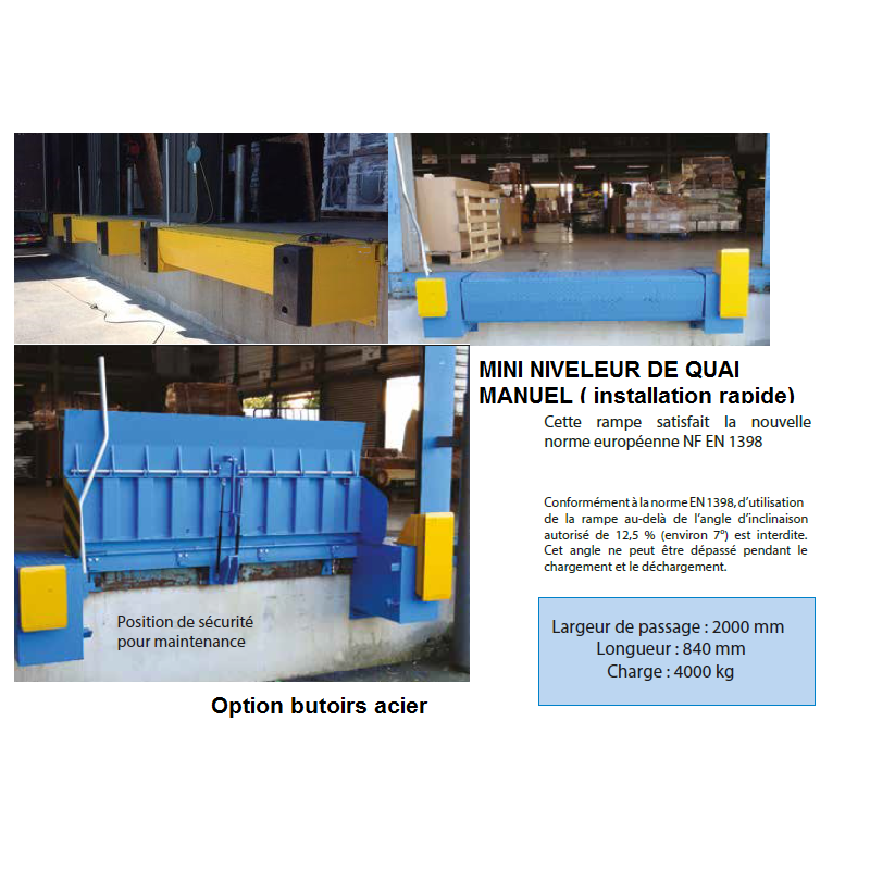 Mini Niveleur De Quai Manuel 4t Butoirs Acier
