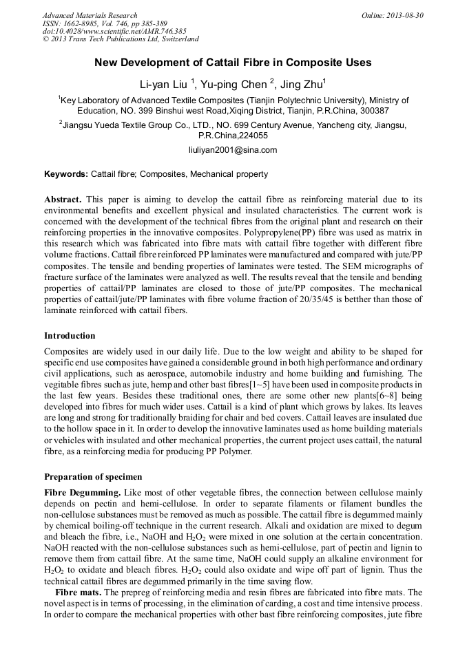 New Development Of Cattail Fibre In Composite Uses Scientific Net