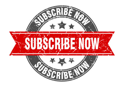 Subscribe Now Round Red Grunge Stamp Royalty Free Vector