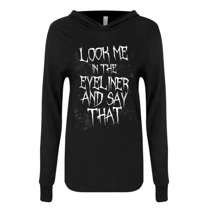 Un Sweat Shirt A Capuche Long Pour Femme Noir Avec Imprime Look Me In The Eyeliner Say That Noir Achat Vente Sweatshirt Soldes Sur Cdiscount Des Le Janvier Cdiscount