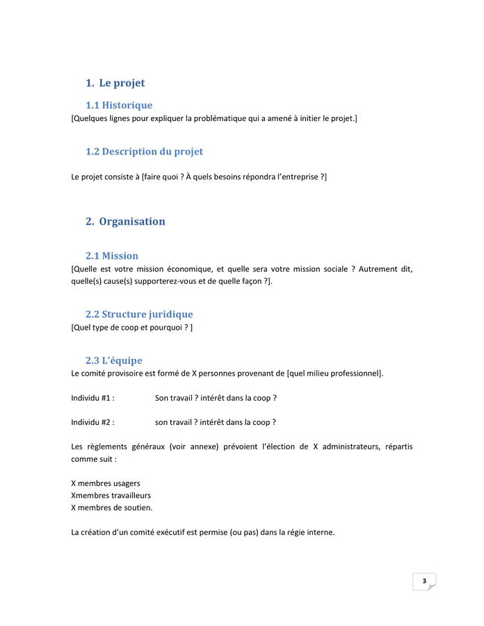 Exemple De Plan D Affaires Pour Entreprise Cooperative Doc Pdf Page 3 Sur 9