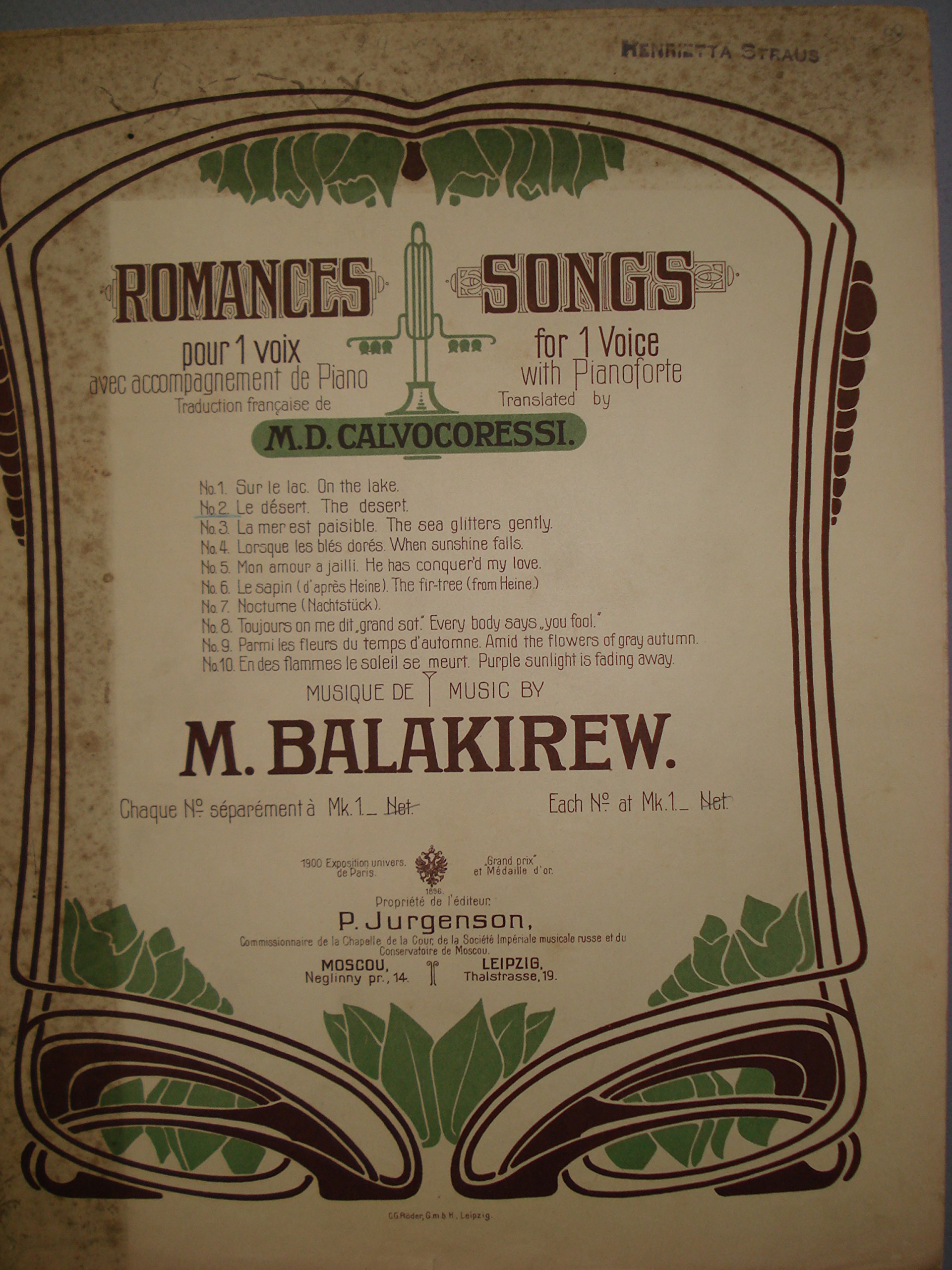 Le Desert The Desert Song For Voice And Piano Low Voice Key Of C Minor C To E Poem By A Jemtchoujnikoff Music By Mili Balakirew A Jemtchoujnikoff M Balakirew French Version