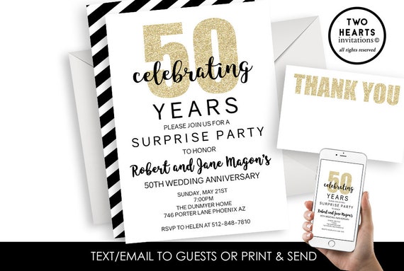 50e Anniversaire De Mariage Invite Invitation Surprise Gold Etsy