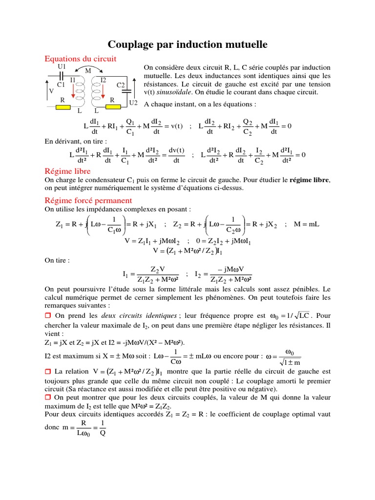 Couplage Par Induction Mutuelle Equations Du Circuit Mecanique Obliger