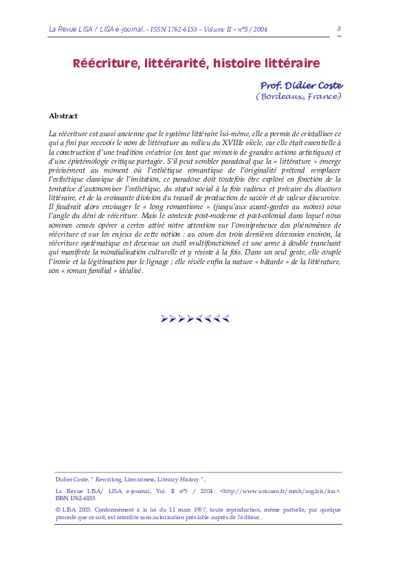 Pdf Rewriting Literariness Literary History Didier Coste Academia Edu
