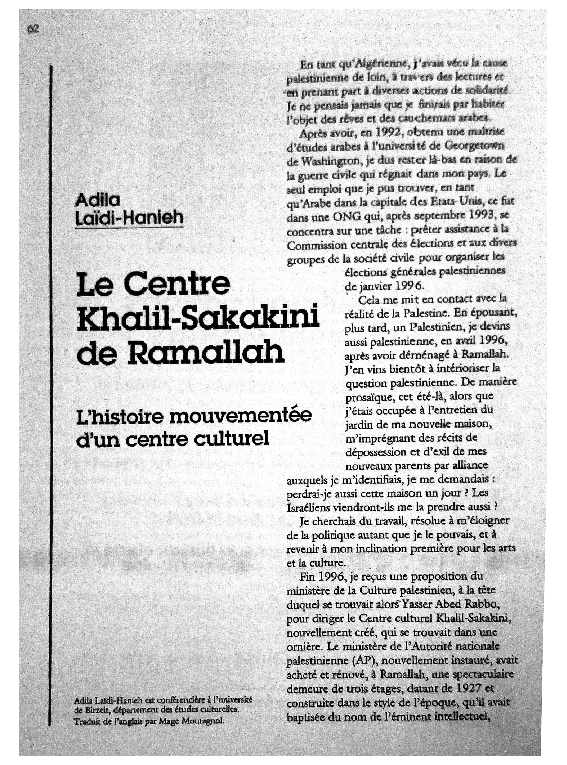 Pdf L Histoire Mouvementee Du Centre Khalil Sakakini De Ramallah Adila Laidi Hanieh Ph D Academia Edu
