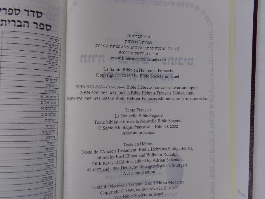 La Sainte Bible En Hebreu Et Francais Relie Hardcover Hebrew French Bible Nouvelle Bible Segond Nbs Biblia Hebraica Stuttgartensia Bhs Modern Hebrew New Testament Hrnt Bibleinmylanguage