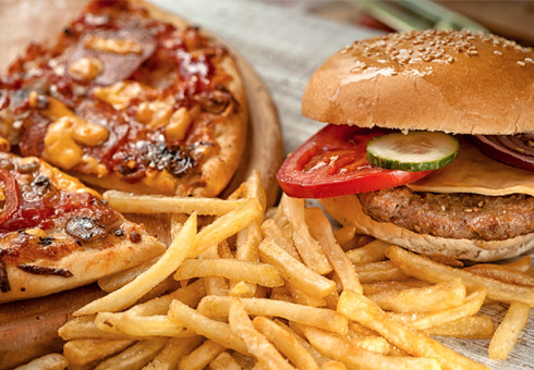 Fastfood Takeaway Junk Food Drinks Burger Soda French Fries Pizza Stock Vector C Seamartini