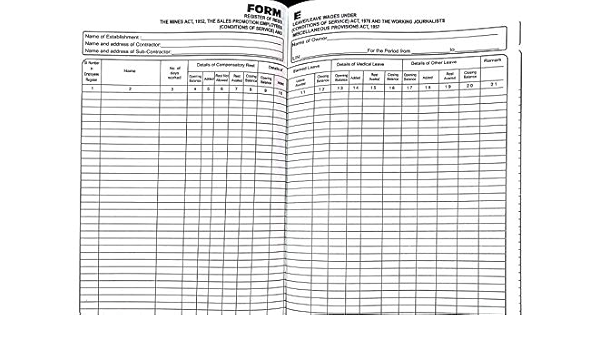 Leave Register Form M Big Rule 4 Under Shop And Establishment Act 2 Quire 68 Folios 136 Pages Amazon In Office Products