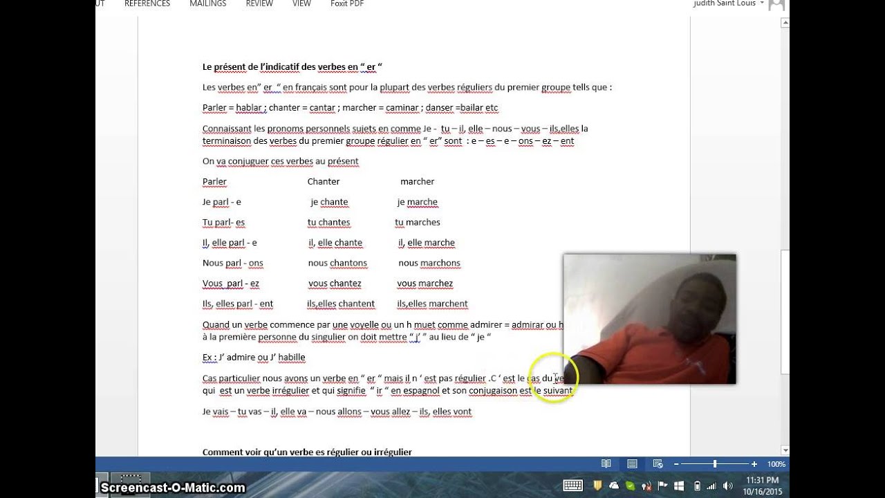 Le Present Des Verbes En Er Youtube
