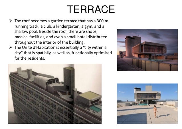 Mucem Rooftop gardens and seats are a mustsee/do See 6,752 traveler reviews, 4,136 candid photos, and great deals for Marseille, France, at Tripadvisor. Unité d’Habitation, 18story residential block in Marseille, France, that expressed Le Corbusier’s ideal of urban family lodging Completed in 1952, it is a vertical mixeduse community, with a shopping floor halfway up and other communal facilities on the roofTwostory living rooms make for efficient use of volumes and permit the use of a “skipstop” system in which elevators stop. The roof becomes a garden terrace that has a running track, a club, a kindergarten, a gym, and a shallow pool Beside the roof, there are shops, medical facilities, and even a small hotel.
