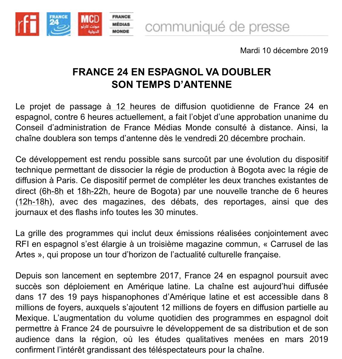France Medias Monde En Twitter France 24 En Espagnol Double Son Temps D Antenne Quotidien Des Le Decembre Partout En Amerique Latine F24enespanolcrece Amlat T Co E1zjpi05h9