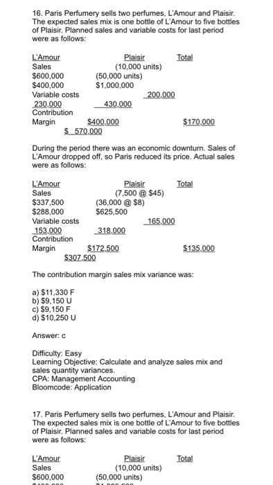 Solved Multiple Choice Questions 15 Paris Perfumery Sell Chegg Com