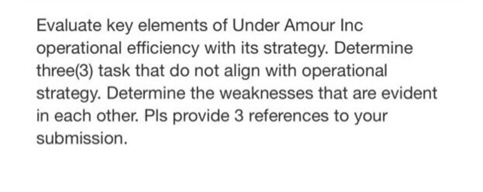 Evaluate Key Elements Of Under Amour Inc Operation Chegg Com