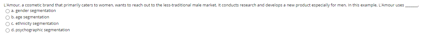 Solved L Amour A Cosmetic Brand That Primarily Caters To Chegg Com