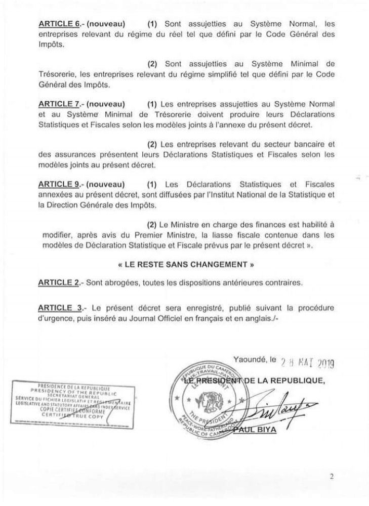 Decret Modifiant Et Completant Certaines Dispositions Du Decret Portant Application Du Systemes Comptable Ohada Et De La Declaration Statistique Et Fiscale Pascal Jogo Et Associes