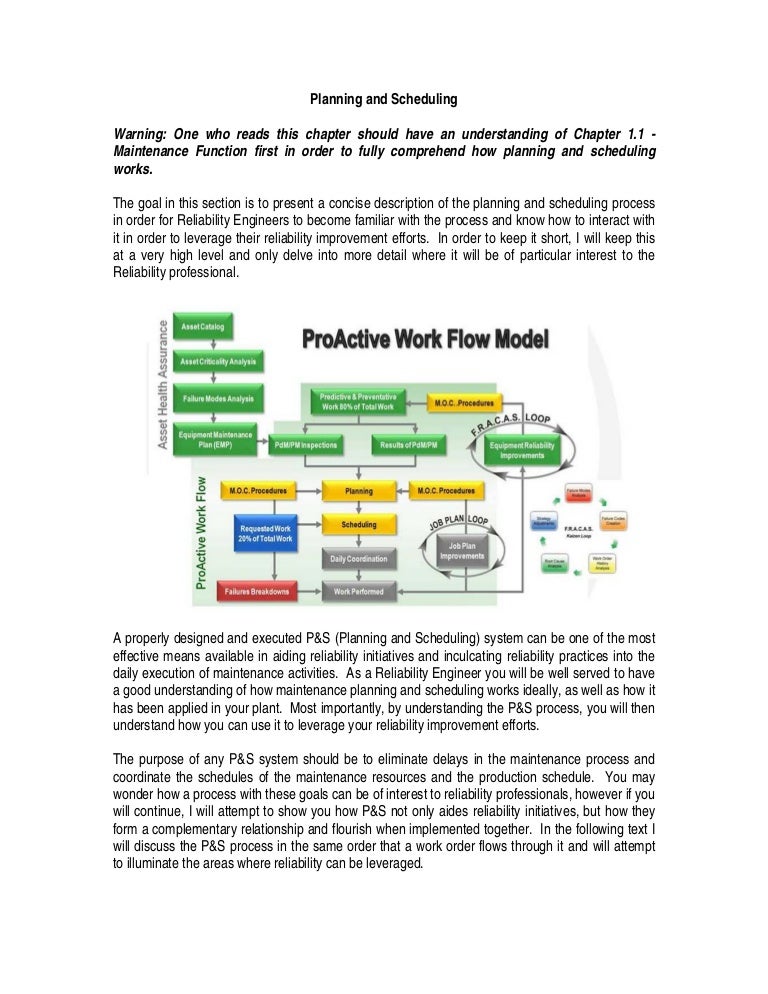 Creating a maintenance plan is generally not difficult to do But creating a comprehensive maintenance program that is effective poses some interesting challenges It would be difficult to appreciate the subtleties of what makes a maintenance plan effective without understanding how the plan forms part of the total maintenance environment. The Basics of Project Planning in Maintenance and Reliability Noria Corporation Though "project management" has become a popular buzzword in the last several years, it has been around for a long time, from the great pyramids of Egypt (circa 2600 BC), to the Great Wall of China (circa 500 BC) and the lunar missions of the th century. Successful maintenance planning and scheduling programs require the disciplined application of proven processes and interdepartmental partnerships It is important for departments that are influenced and impacted by the processes to understand the processes Maintenance Planner Planning engineers Maintenance Supervisor Maintenance Manager.