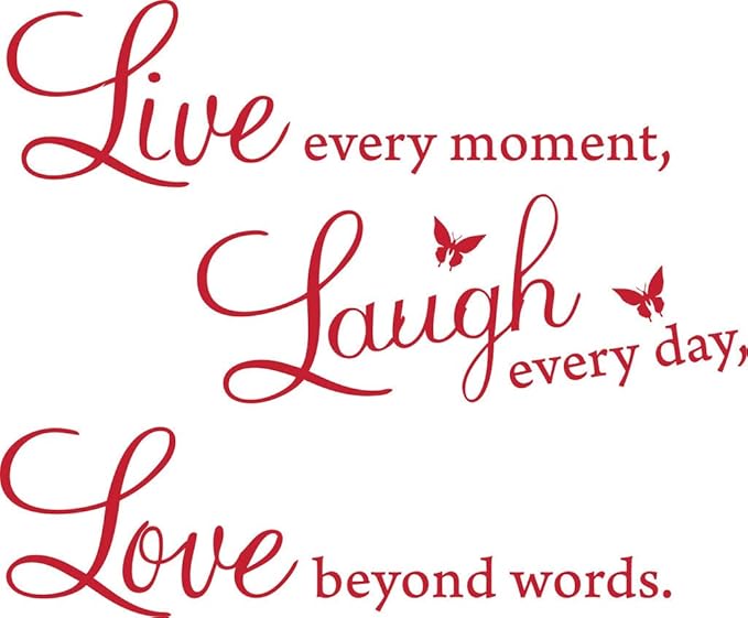 Blinggo 22 X 35 Red Vinyl Decal Live Every Moment Laugh Every Day Love Beyond Words Wall Quote Amazon In Home Kitchen