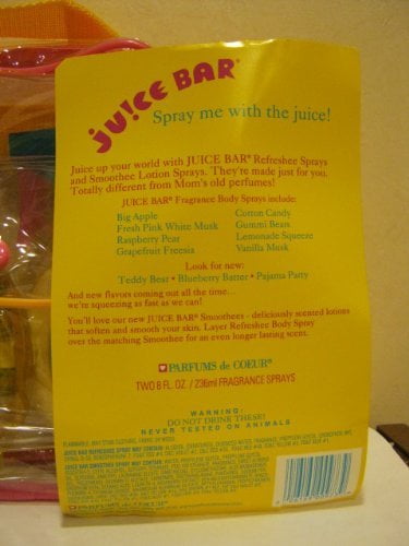 Find helpful customer reviews and review ratings for Parfums De Coeur Juice Bar Fragrance Body Spray Gift Set Raspberry Pear Refreshee Spray & Fragrance Smoothee Spray Each 8 Fl Oz In Clear Case with Back Straps at Amazoncom Read honest and unbiased product reviews from our users. Get 5% in rewards with Club O!. Juice bar body spray????.