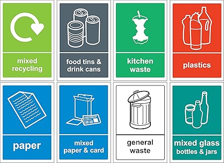 Etiquette Autocollant Poubelle De Recyclage Lot De 6 Stickers En Vinyle Autocollant 150 Mm X 100 Mm Amazon Fr Bricolage