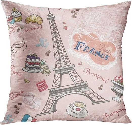 Amazon Com Llsty Throw Pillow Covers 16 X 16 Inches Seamless Pattern On Paris Romantic Elements Polyester Soft Square For Couch Sofa Bedroom Living Room Home Decor Home Kitchen