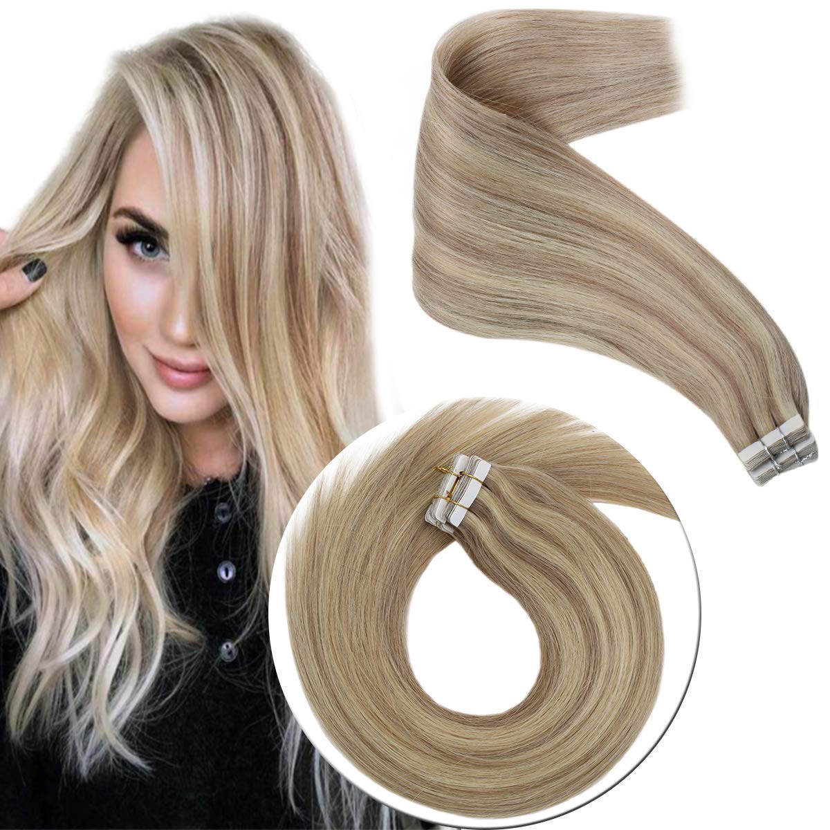 Amazon Com Sunny Ash Blonde Highlight Extensions Tape In Seamless Skin Weft Color Ash Blonde 18 With 613 Bleach Blonde Highlight Hair Extensions Tape In Human Hair Extensions inch 50g Pack pcs Beauty
