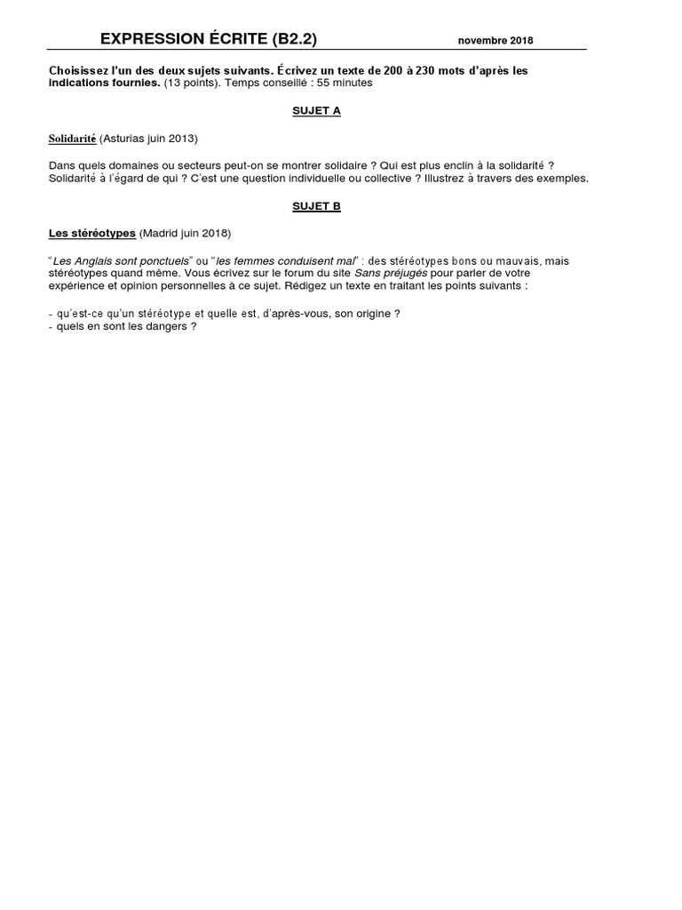 Classe De Fle Exemples De Sujets D Expression Ecrite Corrige Bac