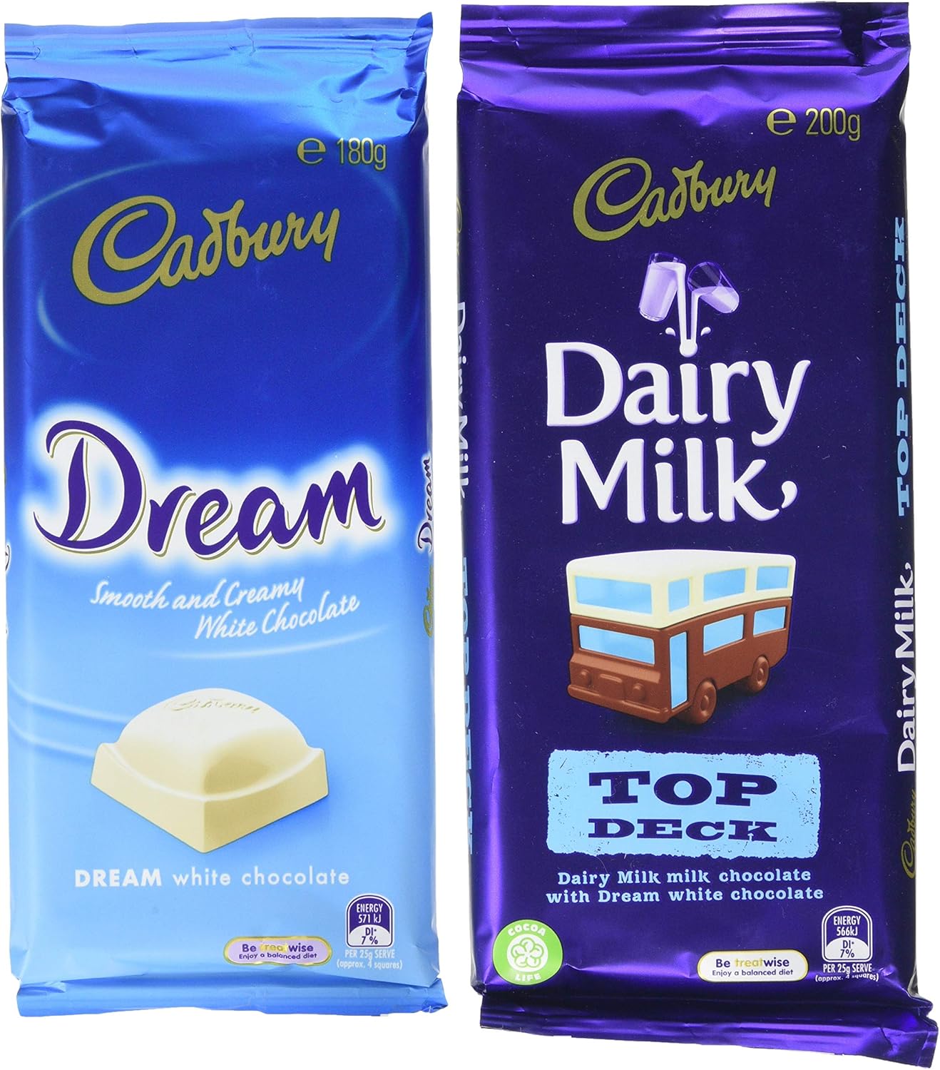 Cadbury Dairy Milk Top Deck contains Dairy Milk milk chocolate with Dream white chocolate The equivalent of a glass and a half of full cream milk in every 0g of Cadbury Dairy Milk Milk Chocolate Proudly made in Tasmania Made in Australia from imported and local ingredients. Cadbury Chocolate Gift Pack Large 12 FULL SIZE Chocolate bars of delicious Cadbury Chocolate from the UK with unique Gift Box and a free Global Treats Chocolate 44 out of 5 stars 759 $72. 30 Apr 17 423 pm;.