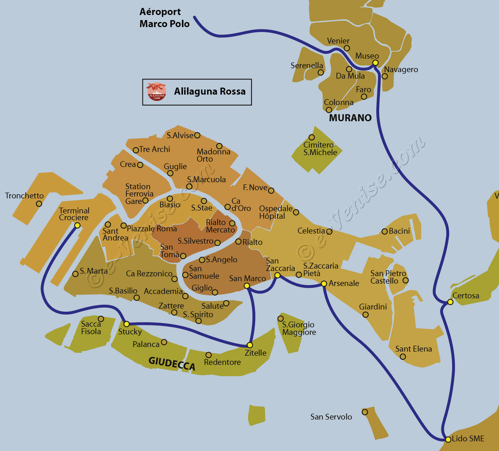 Oriane et Angel vous ont rassemblé toutes les informations détaillées sur la ligne 12 du vaporetto de Venise Vous aurez le plan interactif ainsi que les derniers horaires, le tout en plan interactif et en téléchargement pdf gratuit. Important this vaporetto station 2 is called Ferrovia (ferro=iron, via= path or way, so simply translates ironway) Station 8 Rialto Venice's vaporetto line 1 stops next to one of the most famous bridges in the world, the Rialto bridge. Le réseau Alilaguna est composé de lignes qui relient les principales zones du centre historique, le Lido, Murano, et l’Aéroport Marco Polo, en utilisant de confortables embarcadères De chaque arrêt, il est possible d’atteindre en quelques minutes n’importe quel point de la ville.