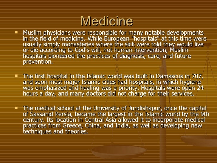 Medical progress in the golden age of islam. Medical Sciences researchers take part in MRC Festival of Medical Research 18 Oxford researcher gets £1m boost to study immunology of asthma World’s largest autism grant will transform research landscape. To translate it into Arabic, and to collect all of that knowledge in one place And just to get a sense of the type of advances that occurred during this golden age of Islam which correlates strongly, or is essentially during the Abbasid dynasty and it ends with the Mongol invasion in the middle of the 13th century right over here. International medical or the age;.
