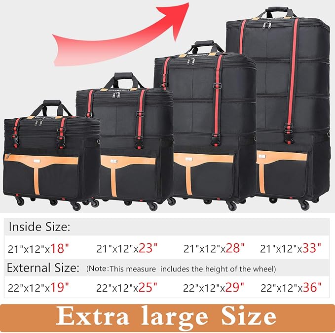 Amazon Com Ailouis 36 Inch Expandable Extra Large Xxl Wheeled Travel Duffel Luggage Bag Black B Travel Duffels