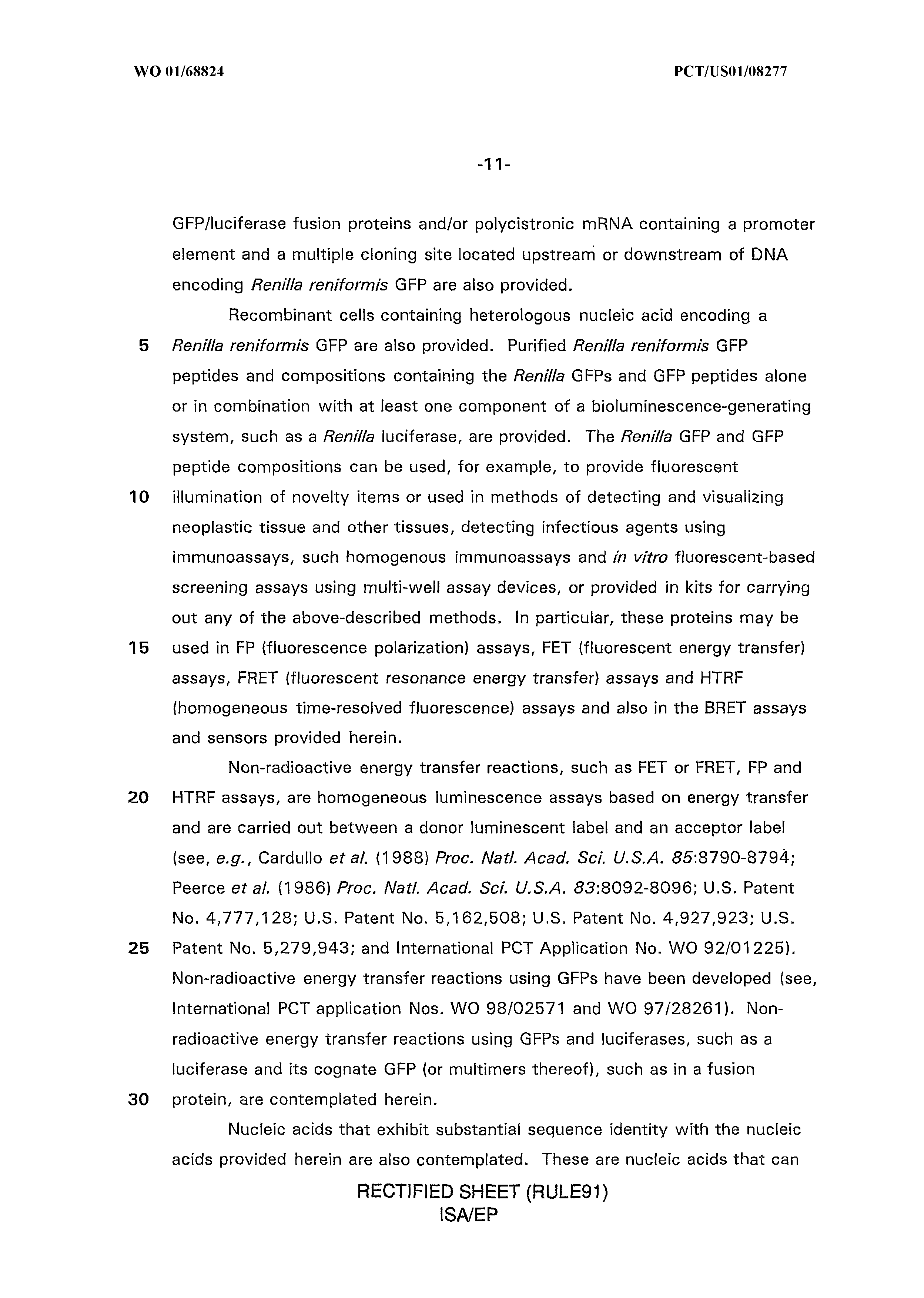 Wo 01 0684 Renilla Reniformis Fluorescent Proteins Nucleic Acids Encoding The Fluorescent Proteins And The Use Thereof In Diagnostics High Throughput Screening And Novelty Items The Lens Free
