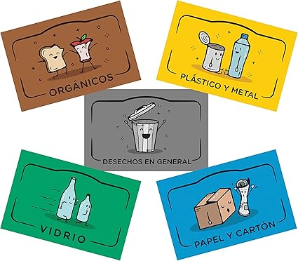 Rekay Autocollants Pour Le Recyclage 5 Etiquettes Adhesives Pour Recycler Et Separer Les Dechets Etiquette Chaque Poubelle Avec Adhesifs En Espagnol De 8 5 X 5 5 Cm Chacun Amazon Fr Cuisine Maison