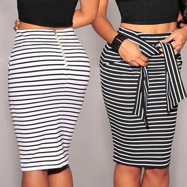 Femmes Fashion Bandage Slim Jupe Rayee Solide Sexy Jupe Crayon Taille Haute Wish