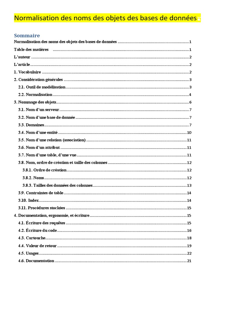 Frederic Brouard Normalisation Des Noms Des Objets Des Bases De Donnees Donnees Gestion Informatique