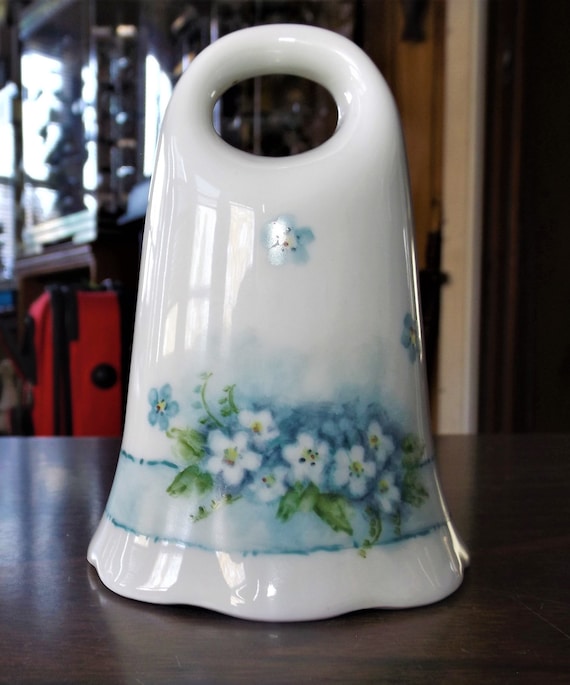 Antique Limoges Hand Painted Porcelain Bell French Bell Hutschenreuther Selb Bavaria Porcelain Forget Me Not Flowers Floral Ceramic Changingtreasures