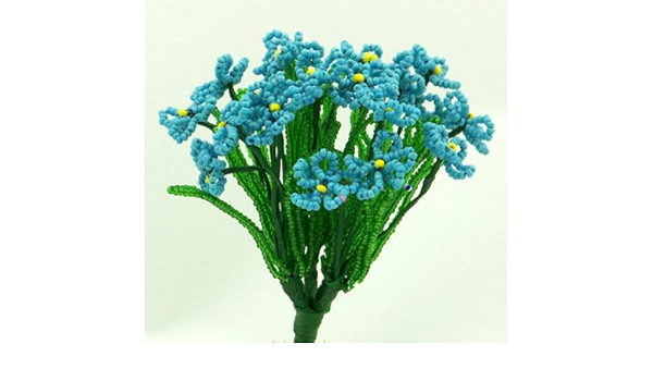 Amazon Com French Beaded Turquoise Forget Me Not Short Stem Flower Bouquet Kitchen Dining