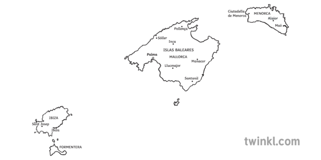 Mapa De Islas Baleares Provincias Espana Islas Baleares Ks2 Blanco Y Negro