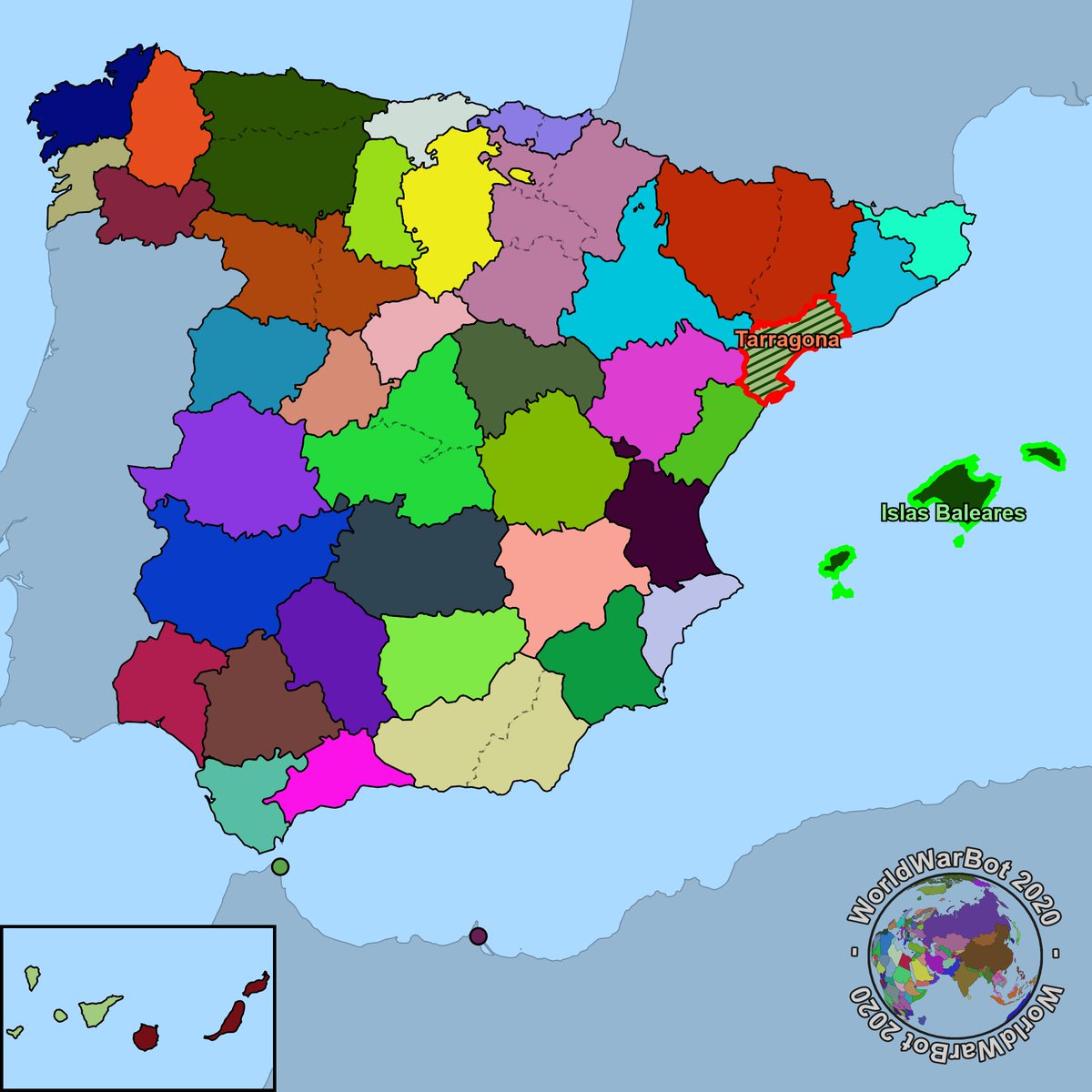 Guerracivilbot Cuarta Semana De Abril Ano Islas Baleares Ha Conquistado La Provincia De Tarragona Tarragona Ha Sido Derrotada 42 Provincias Restantes T Co Exrtn9ngjk