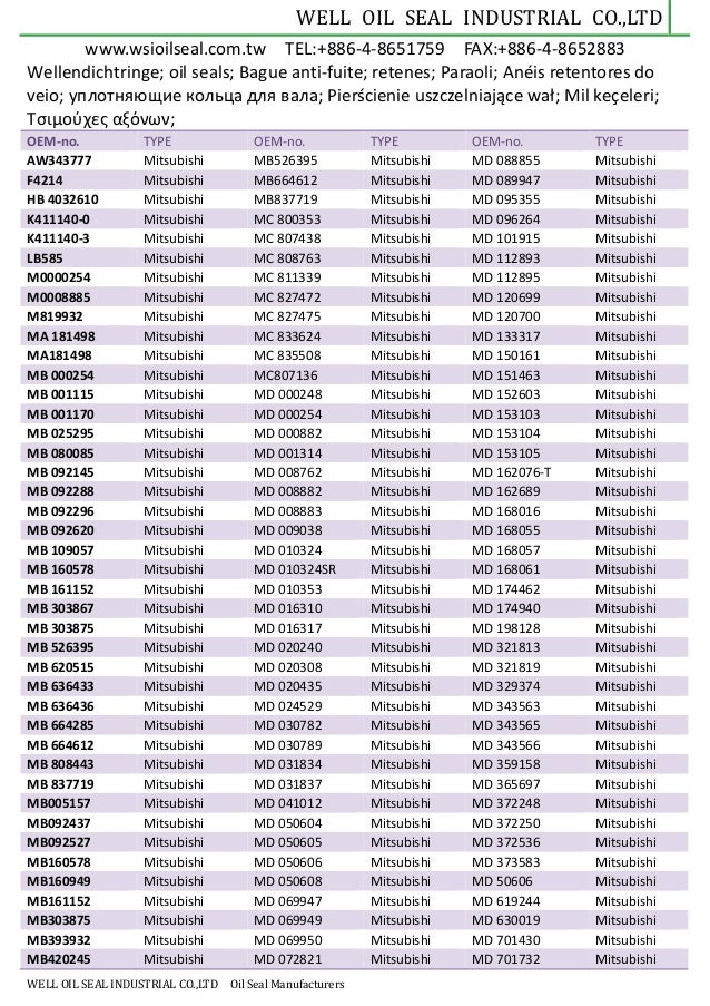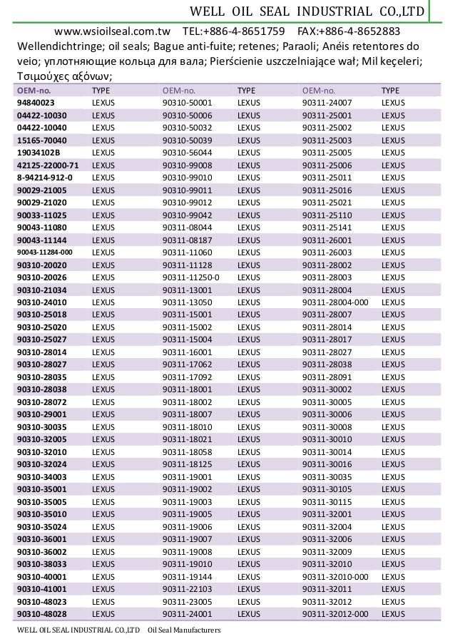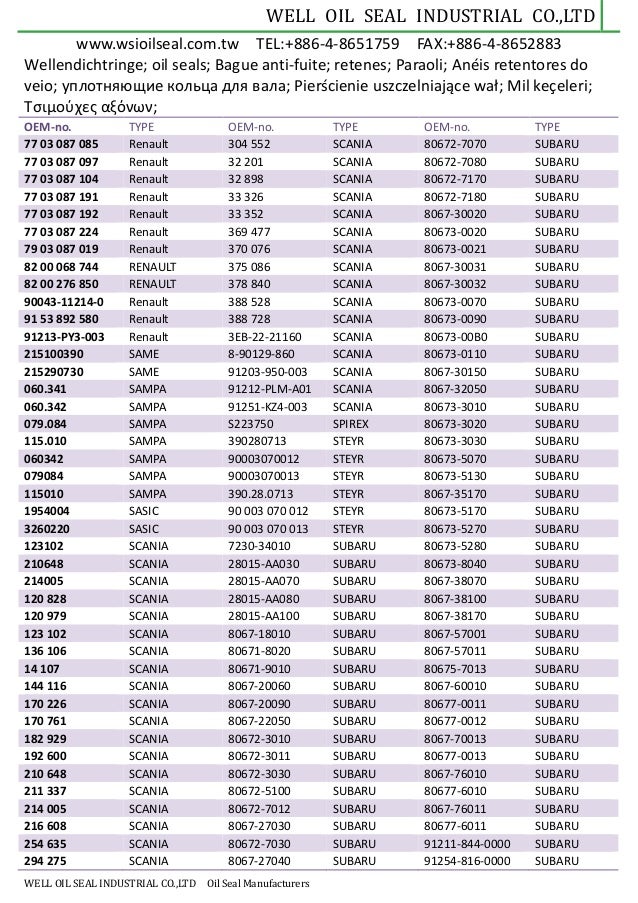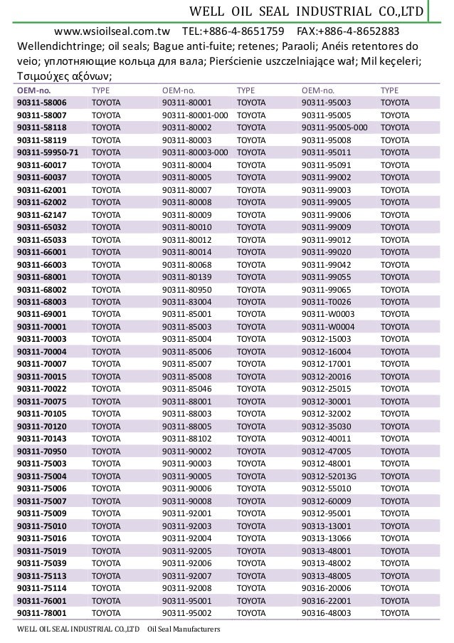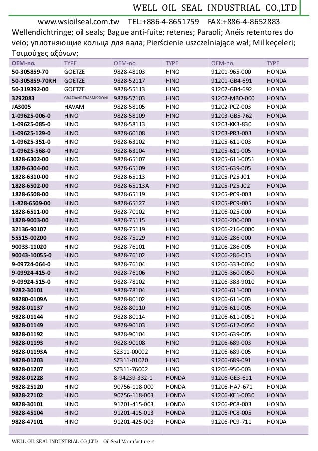 Well Oil Seal Catalog Pdf Document