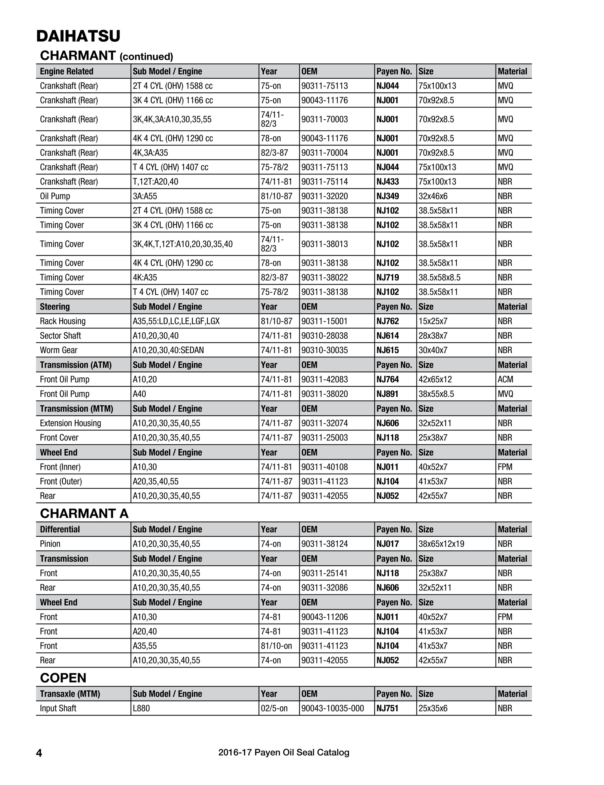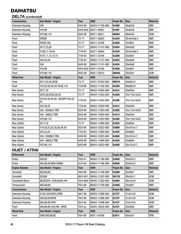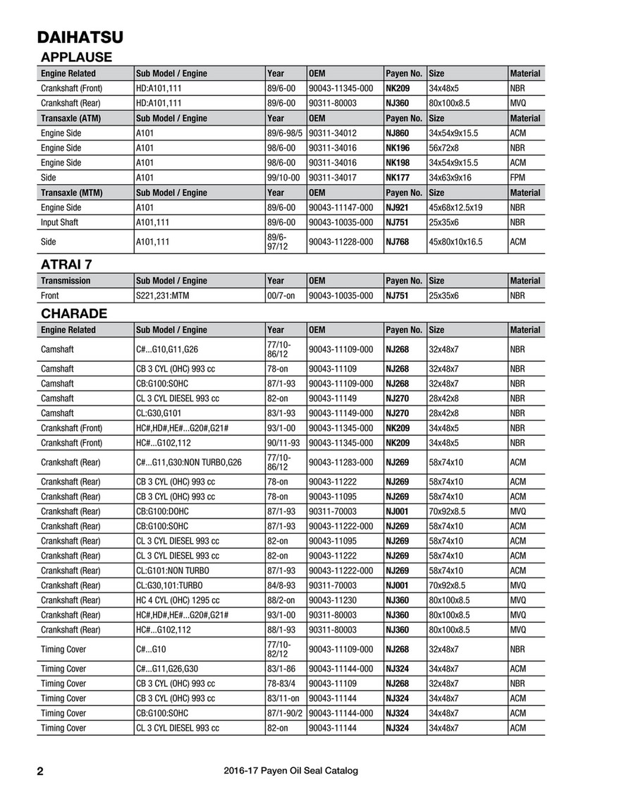Payen Oil Seal Catalog Page 2 3