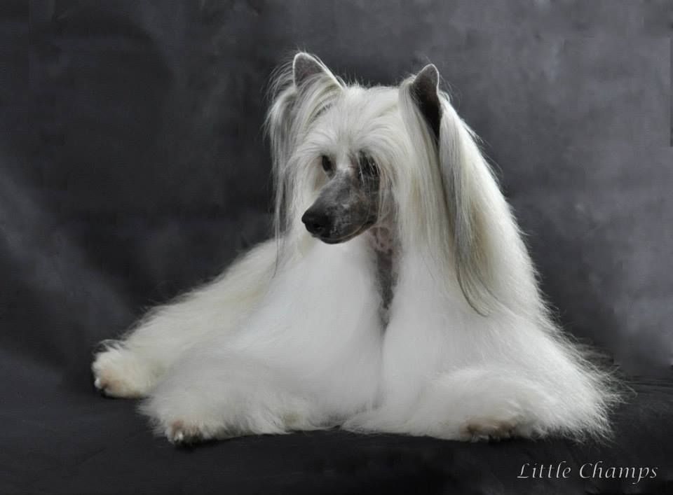 Chien chinois à crête Origine L'Origine exacte du chien chinois à crête restera probablement un mystère, mais on croit qu'il descend de chiens africains nus acquis par les Chinois qui en ont ensuite réduit la taille de ce chien À une époque, on le connaissait sous le nom de Chinese Ship Dog (chien de navire chinois), car la race accompagnait les marins chinois sur leurs navires pour y. Breed status Recognized on a definitive basis Country of origin of the breed CHINA Country of patronage of the breed GREAT BRITAIN Working trial Not subject to a working trial according to the FCI breeds nomenclature. At maturity, the powder puff stands between 11 and 13 inches high at the shoulder, with a weight ranging from 5 to 12 pounds Males are larger than females Fineboned and delicate, the powder puff boasts a fine, straight, silky coat covering her entire body The breed can be any solid color or color combination.