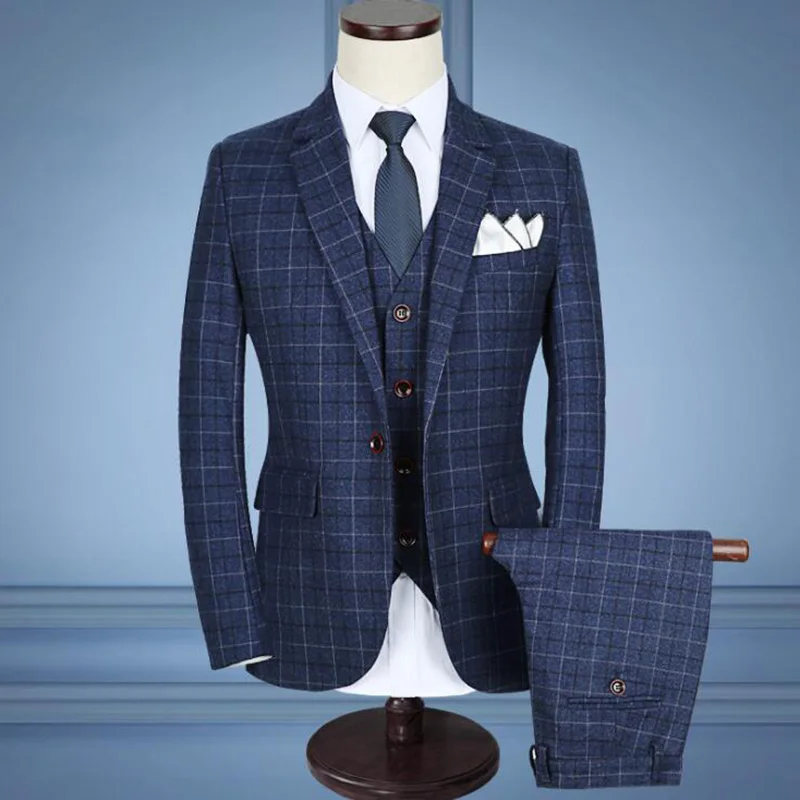 Angleterre Style Hommes D Affaires Costume Costume Bleu A Carreaux Costume Veste Gilet Pantalon Livraison A Repasser Processus Manches Longues M 5xl Aliexpress