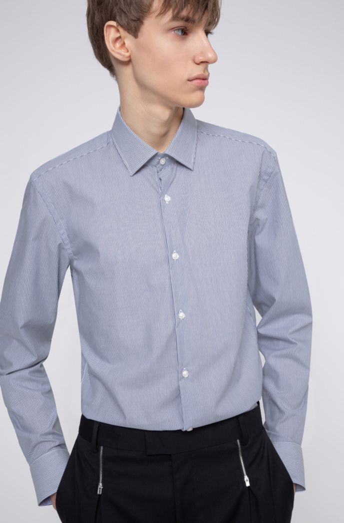 Hugo Chemise Slim Fit En Popeline De Coton Raye Facile A Repasser