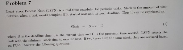 Solved Problem 7 Least Slack Process Next Lspn Is A Rea Chegg Com