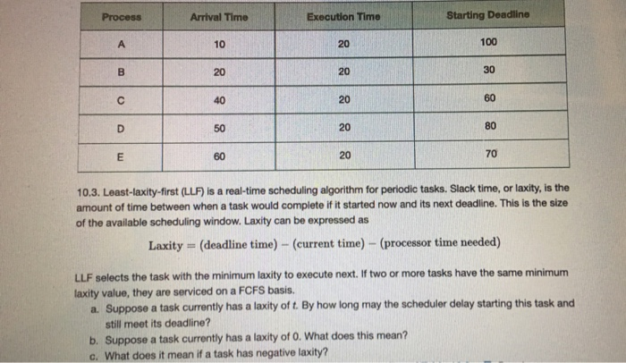 Solved Arrival Time Execution Time Starting Deadline 100 30 10 40 50 80 60 70 103 Q