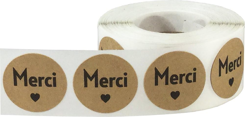 25 Mm 1 Pouce Rond 500 Etiquettes Sur Un Rouleau Kraft Marron Cercle Avec Noir Merci En Chinois Autocollants Bazis Az