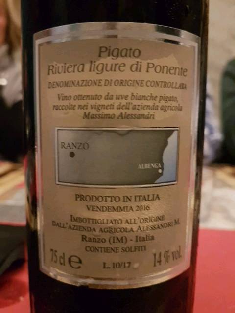 Vino Pigato Doc V Q P R D Riv Ligure Di Ponente Olio Roveraro