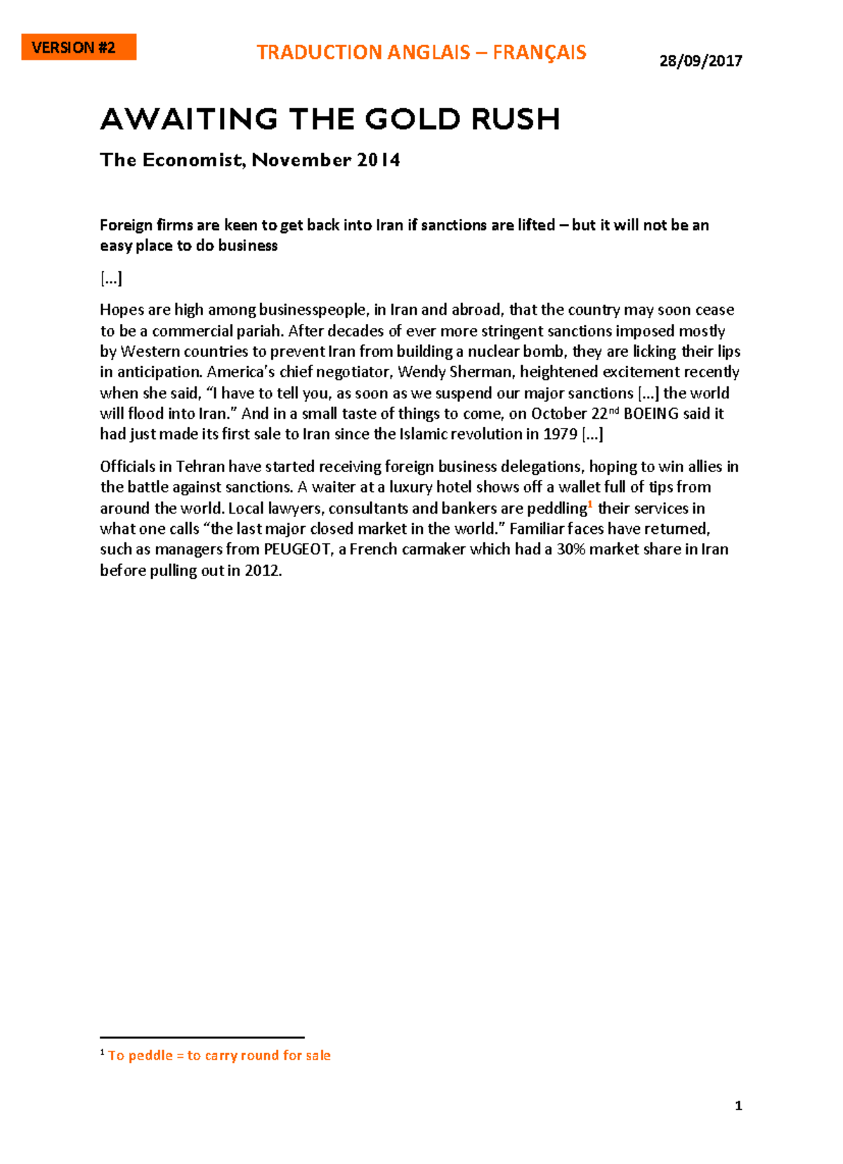 Awaiting The Gold Rush Td Traduction Specialisee Version Anglaise Lea L3 Par Mme Berger Studocu