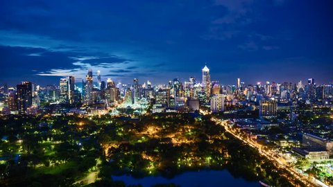 Ville A La Vue De Nuit De Bangkok De Parc De Lumpini Thailande Image Stock Image Du Nuit Bangkok